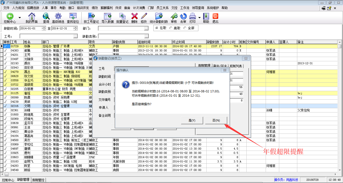 員工年假提醒: