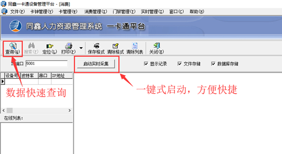 通過簡單的操作可以有效的進行管理,此軟件還支持多種通訊接口連接;同時為了方便數據能夠及時的采集,智慧一卡通的特色功能就很好的為您解決了這個困擾,通過實時管理中的實時采集功能,使刷卡數據可以實時上傳,不需要人工手動操作,這樣就減少了管理部門的工作量。