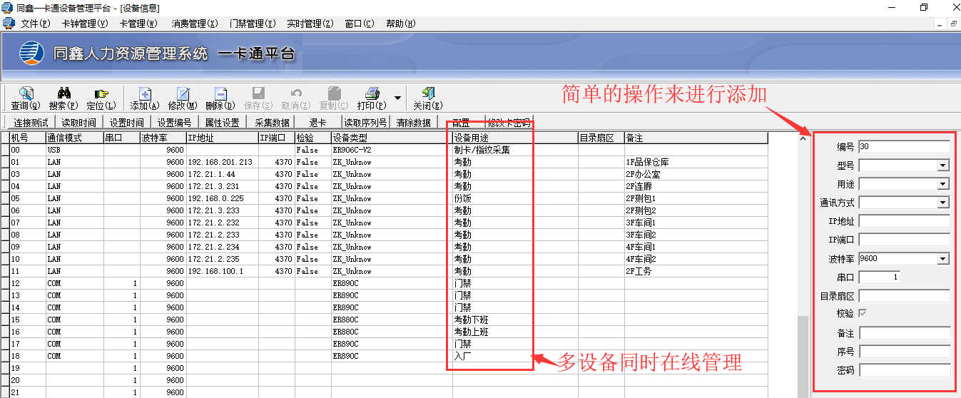 智慧一卡通軟件的主要功能主要就是管理考勤機設備、門禁機設備、消費機設備的智慧軟件。