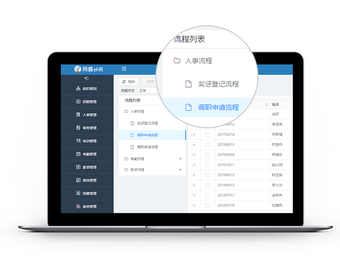 員工入轉調離、考勤、調薪、日常事務等人事流程的完全內置化;